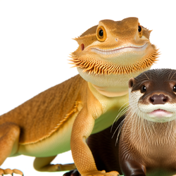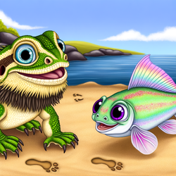 a bearded dragon wandering down a river makes a friend