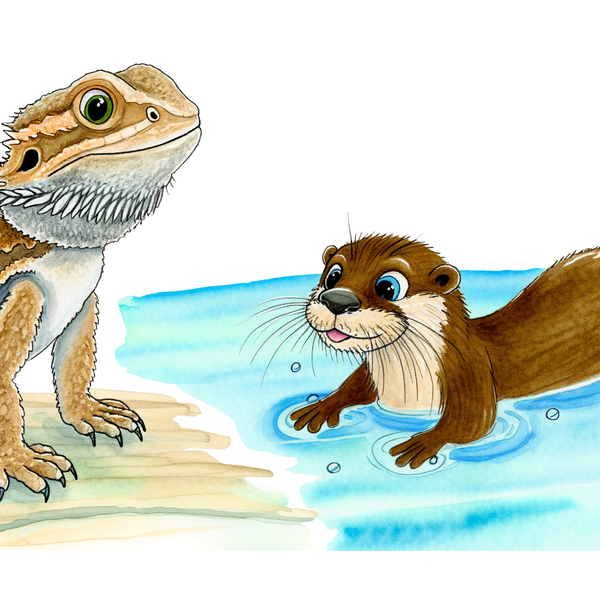 Benny met Riley the River Otter, who was splashing happily in the water.