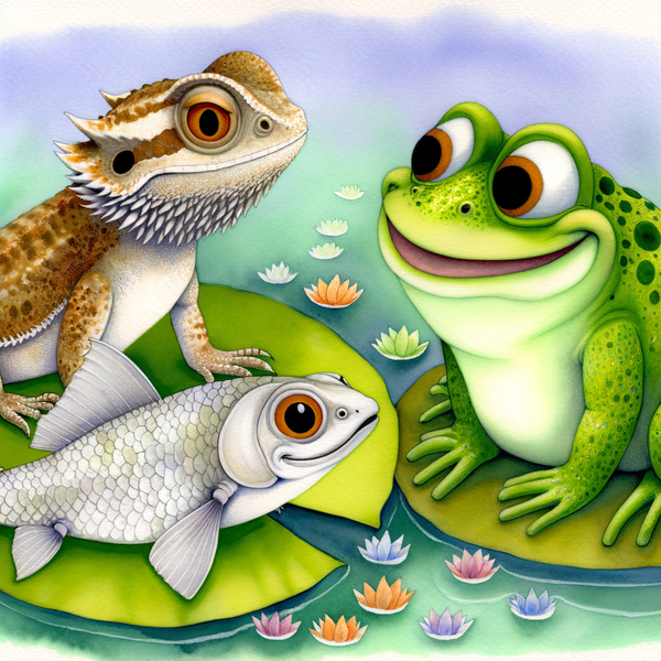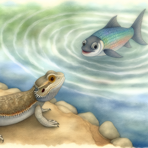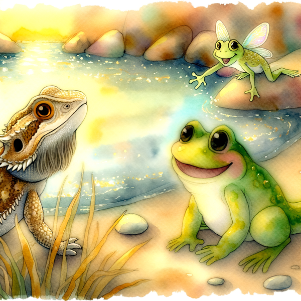 Benny the bearded dragon basked in the warm sun on his favorite rock. He gazed at the sparkling river, wondering what lay beyond his sandy home. With a determined flick of his tail, Benny decided it was time for an adventure. He scurried down the rock and made his way to the riverbank. The cool water lapped at his feet, inviting him to explore.