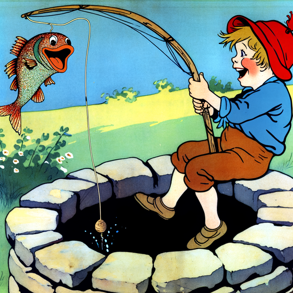 Timmy dropped his line into the well and caught a fish that knew how to smile.