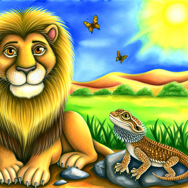 One sunny day, George the Lion met George the Bearded Dragon. They laughed when they found out they shared the same name. Together, they decided to have a day of fun.