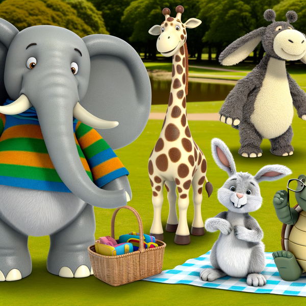 The four friends named George were excited for the picnic but realized they were running late. They hurriedly gathered their things, laughing about how this always seemed to happen.