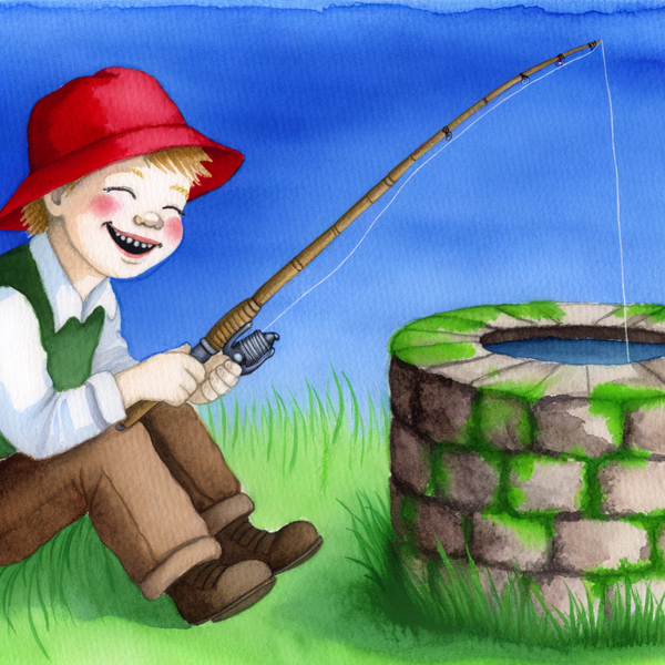 Timmy tossed his tiny fishing line into the old stone well, giggling as he waited for a fish to nibble.
